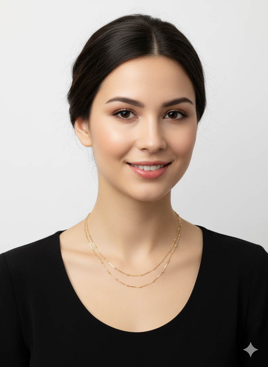 This elegant gold-plated chain features a beautiful, refined link design that catches the light effortlessly. Perfect for wearing solo for a subtle gleam, or as the essential base for layering your favorite pendants and lockets.